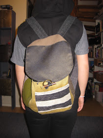 Sydde en ryggsäck till stora tjejen förra året och nu ville min lilla tjej också ha en. Som vanligt syr jag av möbelprover som jag fått från olika möbelbutiker. De slänger allt sånt på tippen. Det är ju fantastiska kvalitéer att sy i och ofta får man lappar i olika nyanser som passar ihop. Jag har sorterat alla mina lappar i färgskalor så om jag känner för att sy något rött så har jag redan det sorterat i en hög. Inspirerande.